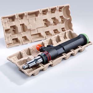 Faserformverpackungen werden nahezu zu 100% aus dem Recyclingkreislauf von Papier und Karton hergestellt. Dies ist die Ausgangsbasis für die Produktion von individuellen Faserformverpackungen. Papier und Karton werden im Wasser in Einzelfasern aufgeweicht, so entsteht ein Brei aus dem ohne Zugabe von Bindemitteln oder sonstigen Chemikalien Fasergussteile hergestellt werden. Fasergussteile, materialgleich den bekannten Eierkartons, sind eine sehr gute Alternative zu Styropor oder Wellpappzuschnitten. Fasergussteile werden als Kartoneinsatz, Polstereinlage, Kantenschutz, Transportschutz, Gefahrgutverpackung, Packpolster, Tray für Dosen und Tuben und Werkstückträger verwendet.